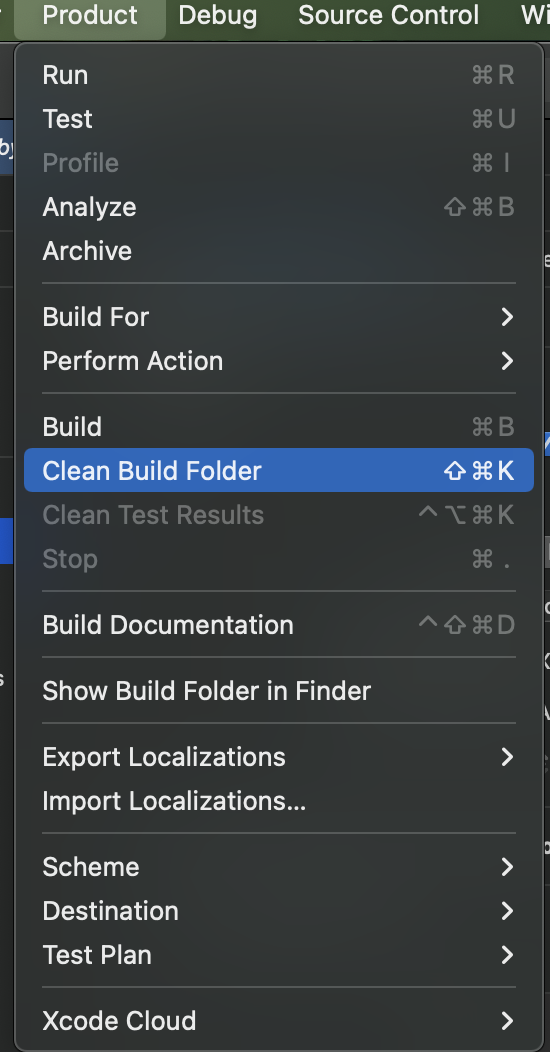 Product -> Clean Build Folder 후 프로젝트 실행