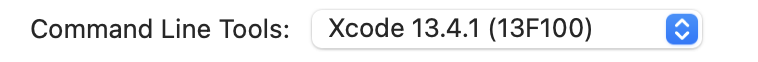 Xcode 실행후 상단 Xcode -> Preferences -> Locations 탭에 들어간후